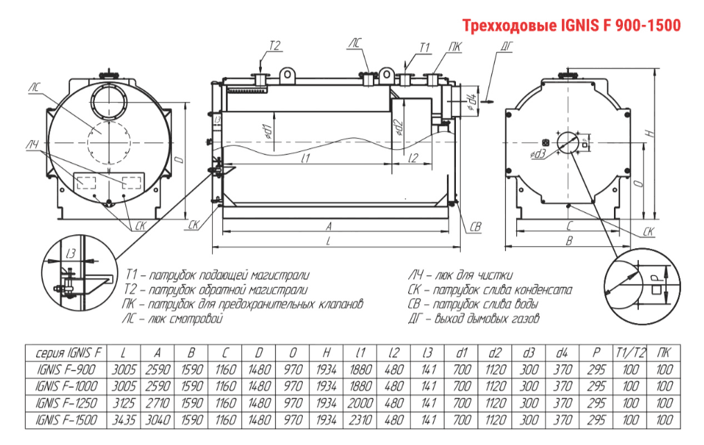 Технические характеристики водогрейного трёхходового котла ARCUS IGNIS F-900